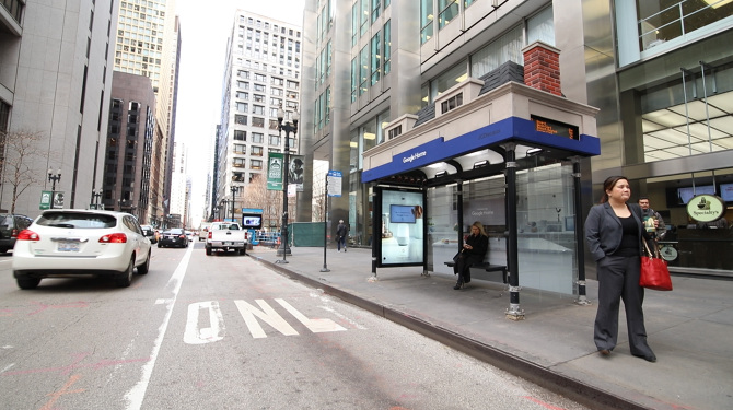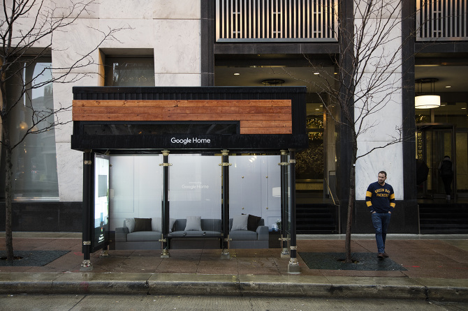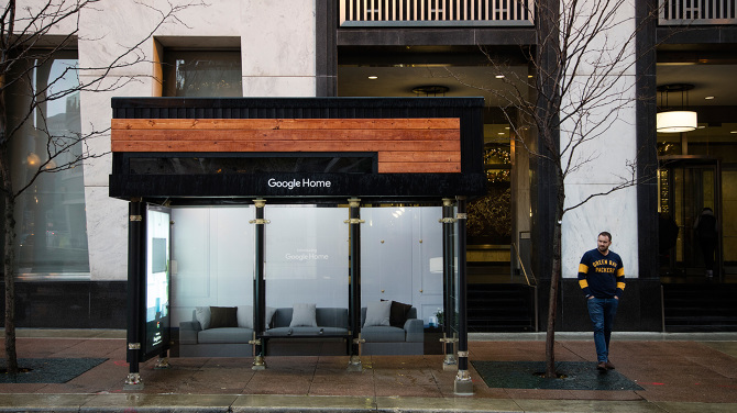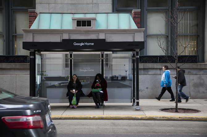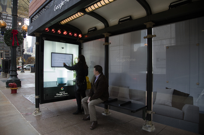 Transit shelters across Chicago turned into mini homes commuters could fully control. Using a touch screen, you could turn up the heat, dim the lights and put on whatever music you like—showing all the ways Google Home can help make a space feel even more like home.